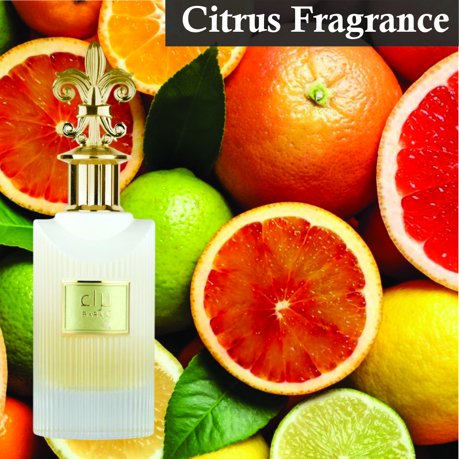 Baraa Perfume has Ingredients of Bergamot, Saffron, Citrus, Rose, Spices, Patchouli, Oud, Amber, Musk, Sandalwood